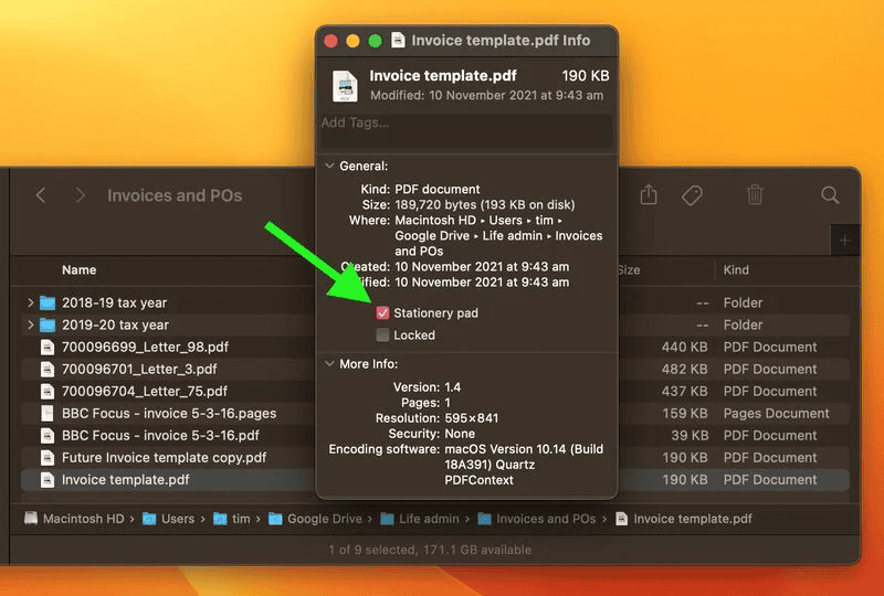 Stationery Pad là một cách thuận tiện để kết hợp một bước trong quy trình làm việc của bạn nếu bạn thường xuyên sử dụng các mẫu tài liệu trên máy Mac của mình. Tính năng Finder lâu đời về cơ bản yêu cầu ứng dụng mẹ của tệp mở một bản sao của nó theo mặc định, đảm bảo rằng tệp gốc vẫn chưa được chỉnh sửa.