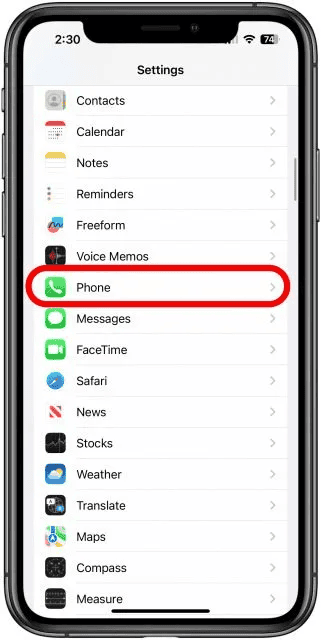 2. Cuộn xuống Điện thoại và nhấn vào nó.