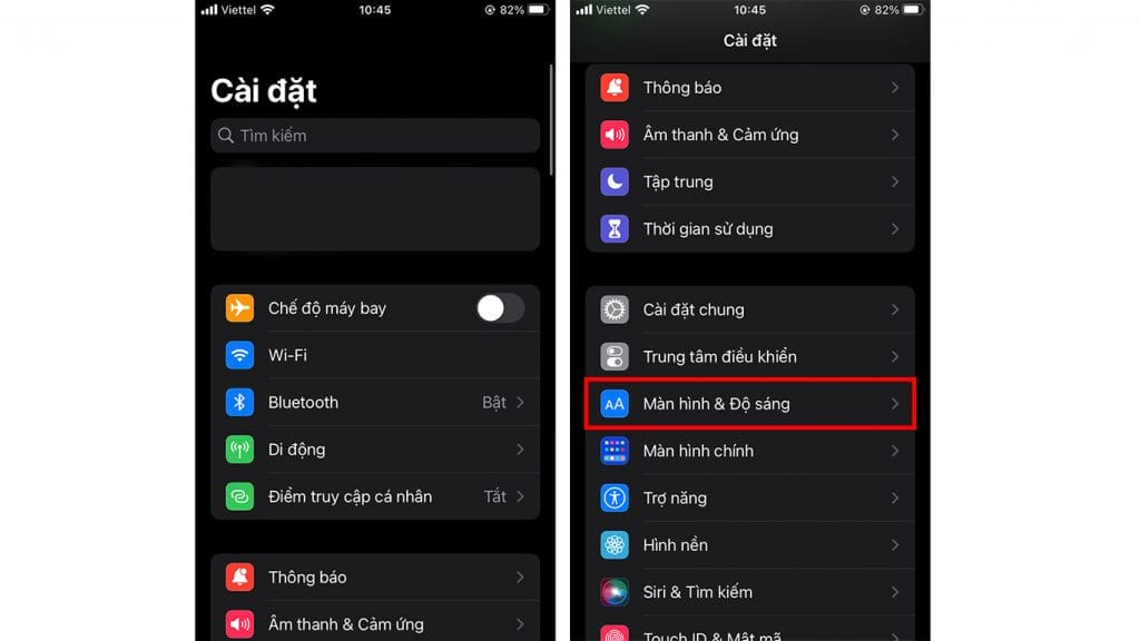 Bước 1: Bạn truy cập vào Cài đặt > Màn hình & độ sáng.