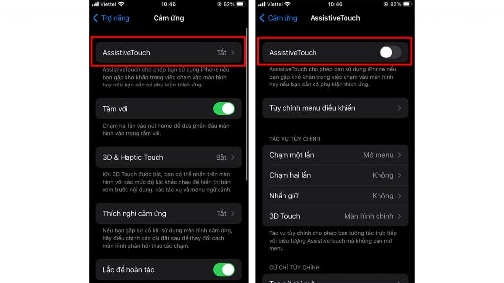 Bước 2: Bạn tìm đến dòng AssistiveTouch và gạt nút sang phải để bật tính năng này lên.