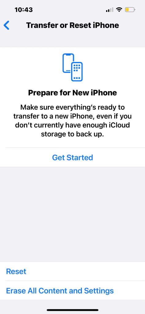 2. Cuộn xuống và nhấn vào Chuyển hoặc Đặt lại iPhone mà bạn sẽ tìm thấy ở cuối trang.