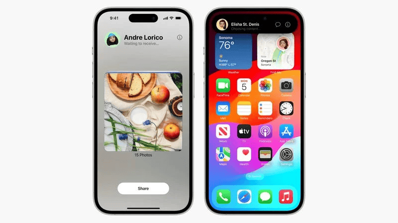 Cử chỉ tiếp cận giữa iPhone với iPhone tương tự hoạt động cho NameDrop cũng cho phép người dùng chia sẻ nội dung như ảnh và tệp.