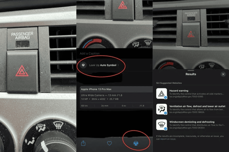 Apple đã không quảng cáo công khai tính năng này, nhưng người dùng Reddit đang tìm hiểu về iOS 17 beta đã phát hiện ra rằng Visual Look Up hiện có thể phát hiện các biểu tượng ô tô trên bảng điều khiển của phương tiện.