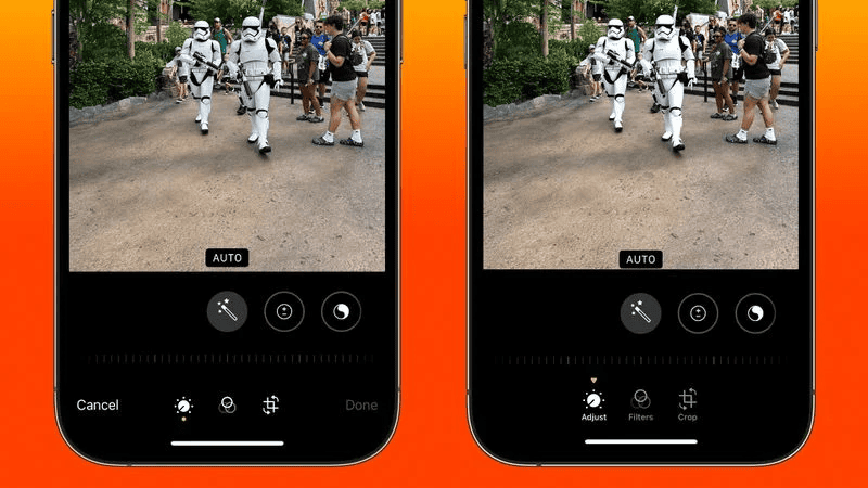 Cuối cùng, Apple trong iOS 17 đã thực hiện một số cải tiến về chất lượng cuộc sống đối với giao diện chỉnh sửa ứng dụng Photos để làm cho nó trực quan hơn một chút. Các nút Hủy và Xong đã được di chuyển từ cuối màn hình lên trên cùng và các biểu tượng công cụ đã được cung cấp mô tả bằng văn bản để làm cho chức năng của chúng rõ ràng hơn.