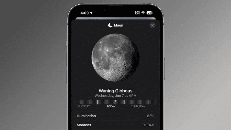 Apple đã thêm một mô-đun mặt trăng hiển thị trạng thái hiện tại của mặt trăng, thời gian cho đến lần trăng tròn tiếp theo, thời gian mặt trăng lặn và mặt trăng mọc cũng như lịch mặt trăng, cộng với mô-đun tốc độ gió có kích thước lớn hơn hiển thị thông tin về tốc độ gió giật tại một thời điểm. Mô-đun gió cũng hiển thị so sánh hàng ngày và thang đo gió.