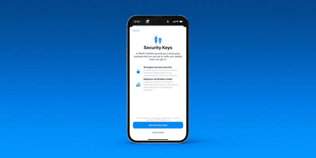 Apple cho biết tính năng bảo mật tùy chọn được thiết kế cho những cá nhân muốn “bảo vệ thêm khỏi các cuộc tấn công có chủ đích, chẳng hạn như lừa đảo qua mạng hoặc kỹ thuật xã hội”. Khi nó được bật, đăng nhập vào Apple ID yêu cầu nhập mật khẩu tài khoản của bạn, sau đó sử dụng khóa bảo mật được FIDO Certified để hoàn tất xác thực hai yếu tố, thay vì mã xác minh gồm sáu chữ số truyền thống từ một thiết bị Apple khác.