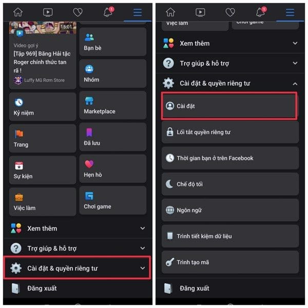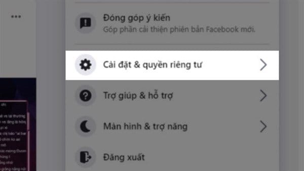 Bước 1: Bạn hãy vào mục cài đặt trên giao diện Facebook. Sau đó chọn Cài đặt và quyền riêng tư.