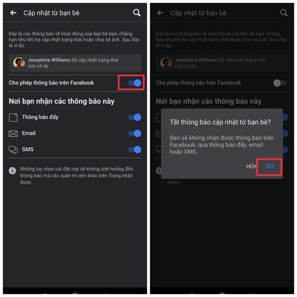 Bước 3: Chọn tắt Cho phép thông báo trên Facebook => Tắt.