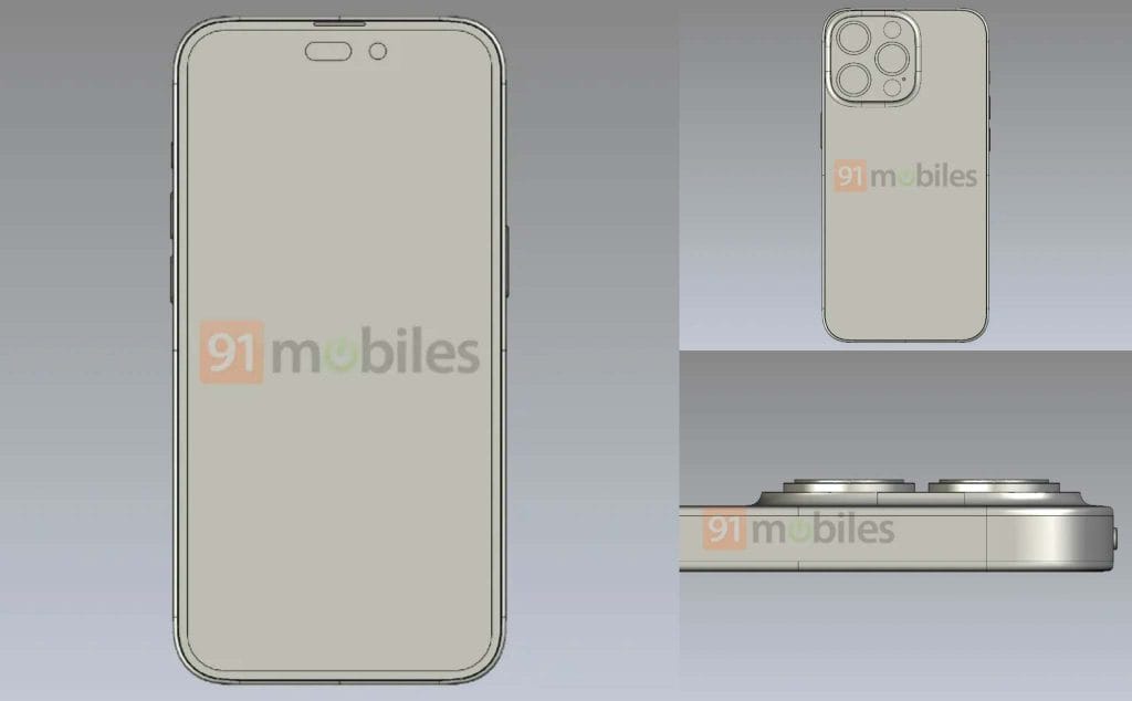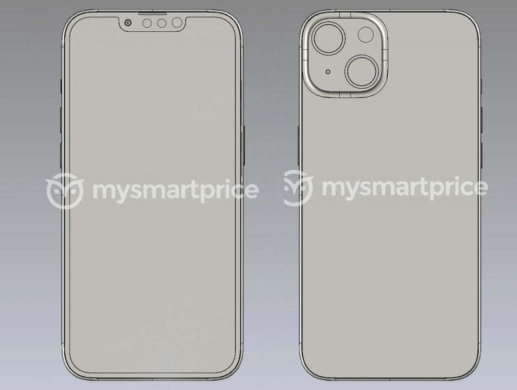 Bản thiết kế mới cho thấy iPhone 14 không có thay đổi về thiết kế mặt trước và cụm camera sau. Các kết xuất được chia sẻ bởi MySmartPrice, thu thập được từ những ‘người trong ngành’ cho thấy thiết kế tương tự iPhone 13. Bản vẽ CAD này được cho là của iPhone 14 phiên bản tiêu chuẩn.