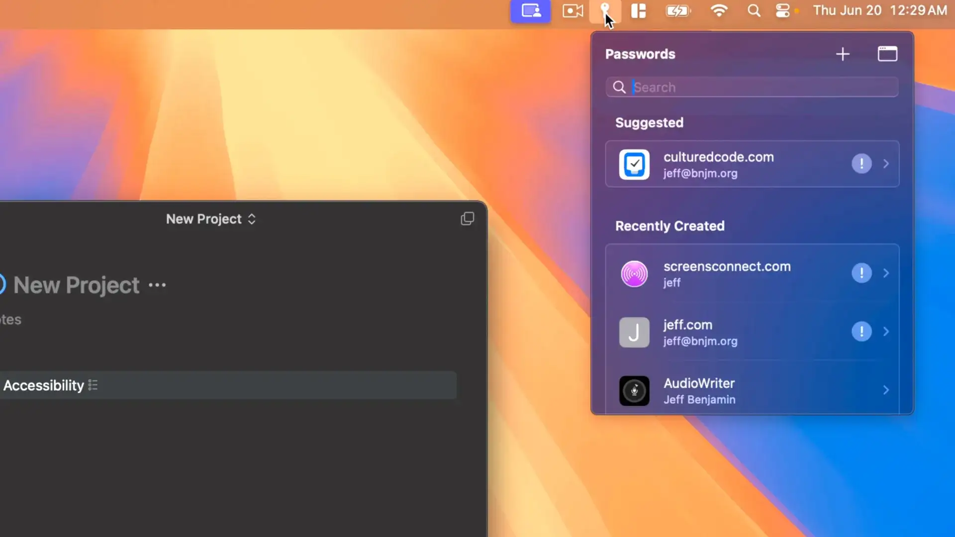 Ứng dụng Passwords bao gồm một tính năng thiết yếu dành cho người dùng Mac – một tùy chọn thanh menu có thể phát hiện cửa sổ nào đang ở phía trước và gợi ý mật khẩu dựa trên ứng dụng hoặc trang web.