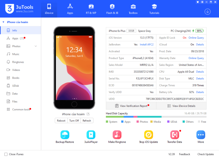 Để thực hiện điều này, bạn có thể kết nối điện thoại của mình với phần mềm như iTools hoặc 3uTools. Sau đó, trong giao diện của phần mềm, bạn có thể tìm thấy mô hình điện thoại và tìm tùy chọn “Reboot” hoặc “Khởi động lại”. Nhấp chọn tùy chọn này và sau đó xác nhận bằng cách nhấn OK.
