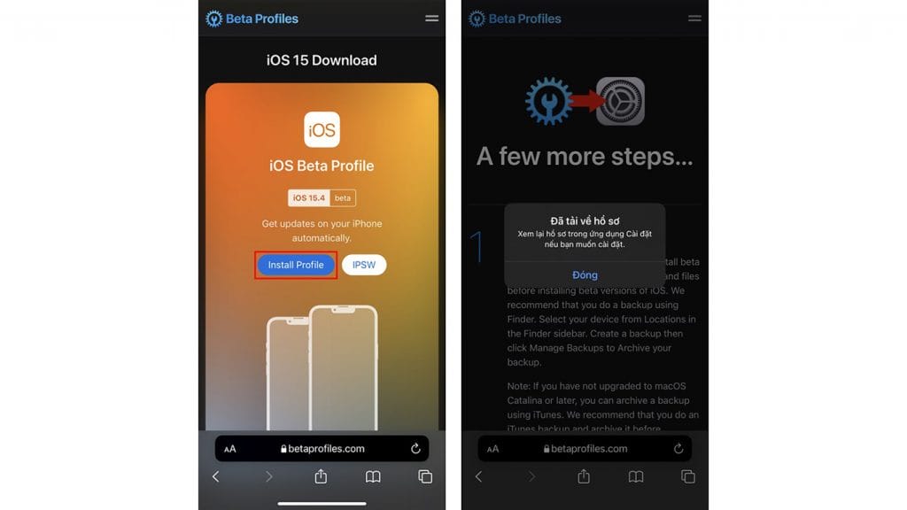 Bước 1: Bạn truy cập vào đường link bên dưới để tải về Profile cho phiên bản Beta nhé.