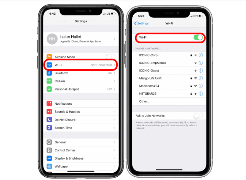 3. Quay lại Cài đặt và nhấn Wi-Fi. Đảm bảo bật/tắt Wi-Fi.