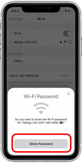 8. Người kia sẽ cần nhấn Chia sẻ mật khẩu.