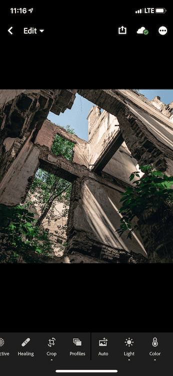 Cũng cần lưu ý rằng ảnh RAW của iPhone có thể trông tệ hơn tệp JPEG tương ứng ngay từ cái nhìn đầu tiên. Và đó là vì máy ảnh không áp dụng bất kỳ điều chỉnh tự động nào cho ảnh RAW. Đây là một ảnh chụp màn hình của Adobe Lightroom Mobile để minh họa điều đó.