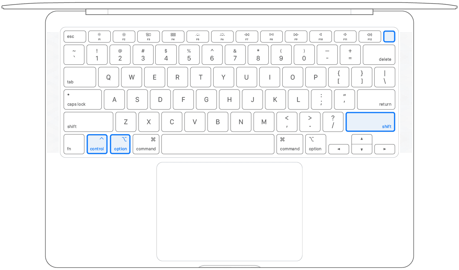 Để thực hiện đặt lại SMC trên máy Mac, hãy tắt máy, sau đó giữ phím Shift + Control + Option và nút nguồn trong 7 giây (một số mẫu Mac mới dùng phím Shift bên phải, các mẫu cũ hơn dùng phím Shift bên trái, các bạn có thể thử cả hai nhé). Sau đó, nhả tất cả các phím và đợi vài giây trước khi bật lại máy Mac.