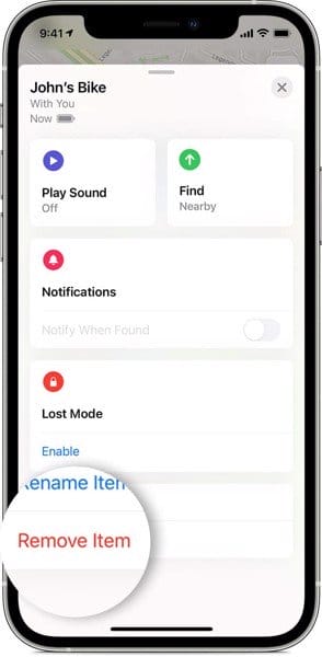 - Nhấn vào AirTag mà bạn muốn xóa bằng cách chọn tên của nó từ danh sách