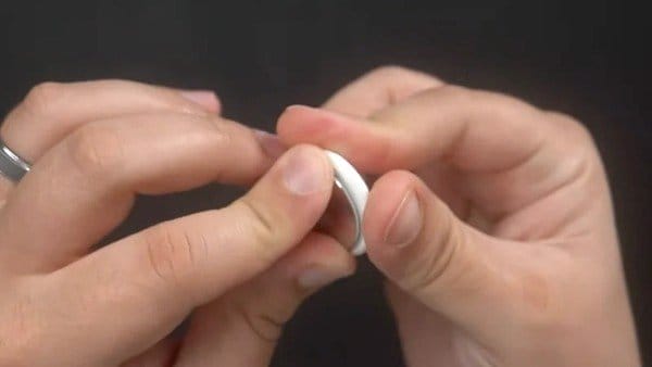 Bước 1: Nhấn xuống mặt sau bằng thép không gỉ của AirTag.