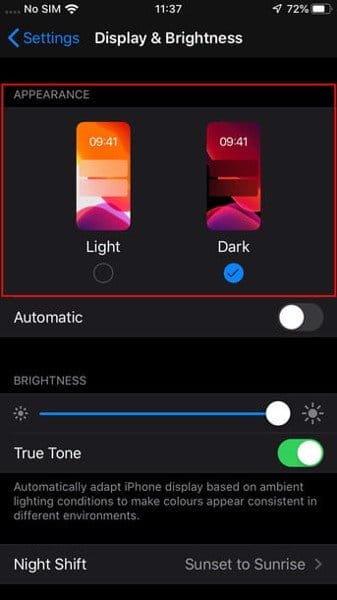 Các bước để bật giao diện tối trên iOS 13: