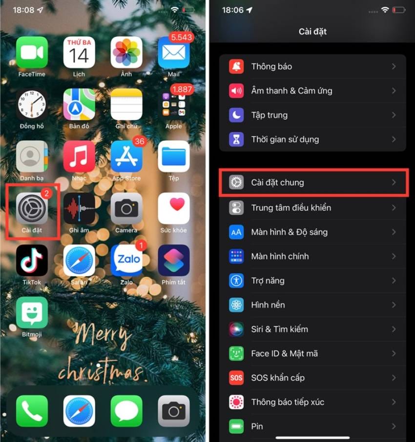 Bước đầu tiên, người dùng cần phải mở điện thoại và truy cập vào mục Cài Đặt trên điện thoại. Tại đây, người dùng tiếp tục chọn vào mục Cài đặt chung để bắt đầu thực hiện quá trình kiểm tra iPhone.