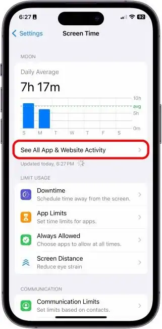 Cách đầu tiên để xem hoạt động đang diễn ra trên iPhone là kiểm tra dữ liệu Thời gian sử dụng của bạn. Điều này sẽ cung cấp cho bạn tối đa một tháng dữ liệu liên quan cho biết ứng dụng nào đang được sử dụng thường xuyên nhất.
