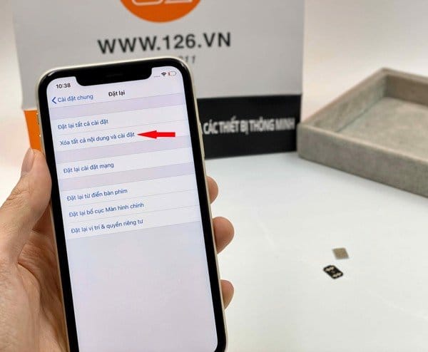 Nếu máy không có sim ghép như bước trên, các bạn tiến hành đặt lại cài đặt gốc. Lưu ý là sẽ mất hết dữ liệu và phải nhớ iCloud của máy nhé các bạn.