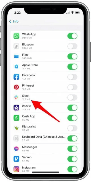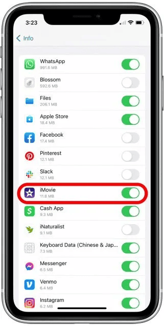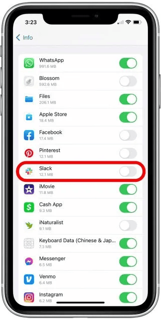 10. Nếu bạn không muốn đồng bộ hóa ứng dụng với iCloud, hãy nhấn vào nút chuyển đổi để tắt ứng dụng đó. (Các nút chuyển đổi có màu xám khi bị tắt.)