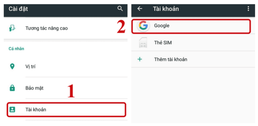 Bạn chọn mục Tài khoản > Google