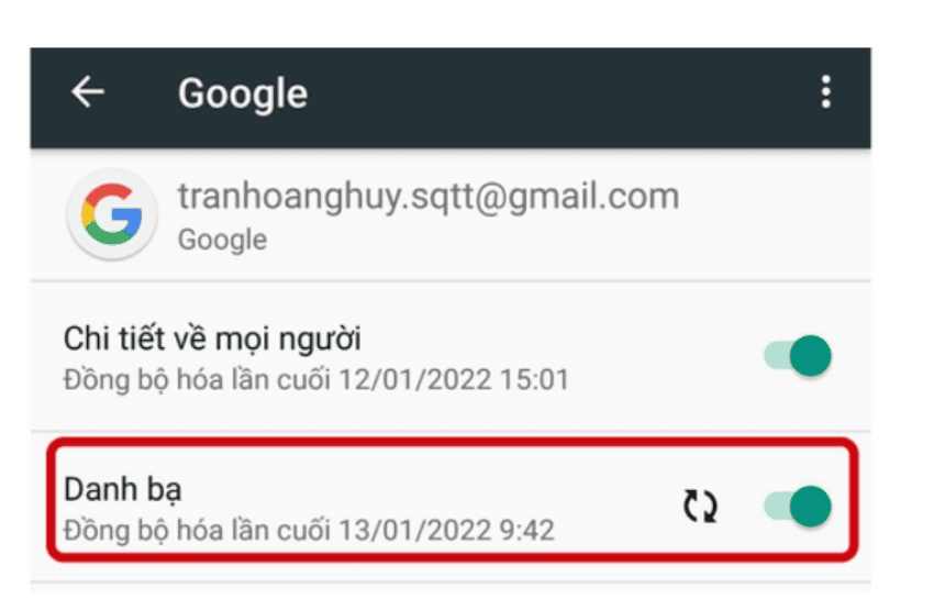Bật tính năng đồng bộ danh bạ