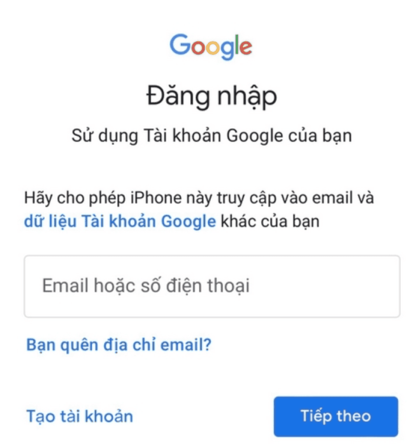 - Bước 4: Bạn phải nhập tài khoản Google hay Gmail của bạn nếu chưa đăng nhập trước đây.