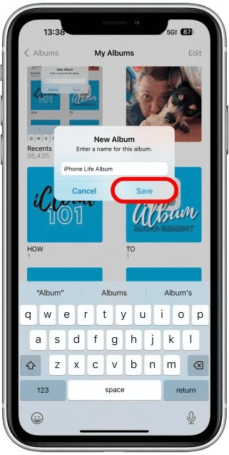 2. Nhập tên cho album của bạn và chạm vào Lưu.