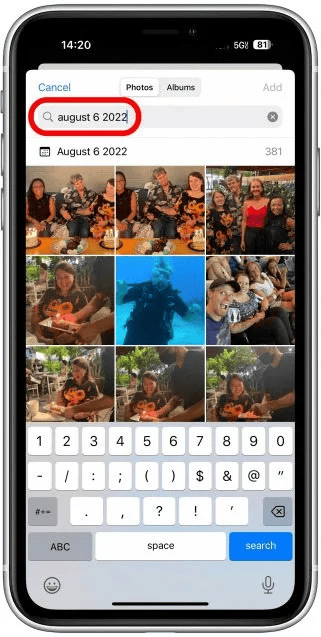 4. Nếu bạn không muốn cuộn, bạn có thể tìm ảnh bằng cách sử dụng thanh tìm kiếm. Tại đây, bạn có thể nhập ngày, địa điểm, vật phẩm, động vật, màu sắc, v.v. Bạn thậm chí có thể thực hiện các kết hợp như “hoa Hawaii” hoặc “đại dương Chicago”. Vì mình thường đăng lên mạng xã hội nên nếu mình muốn tìm một bức ảnh cụ thể, mình sẽ tra cứu nó trên Facebook hoặc nền tảng khác để xem ngày mình đăng và mình sẽ tìm kiếm ngày cụ thể đó, bao gồm cả năm, để xác định vị trí của bức ảnh đó.
