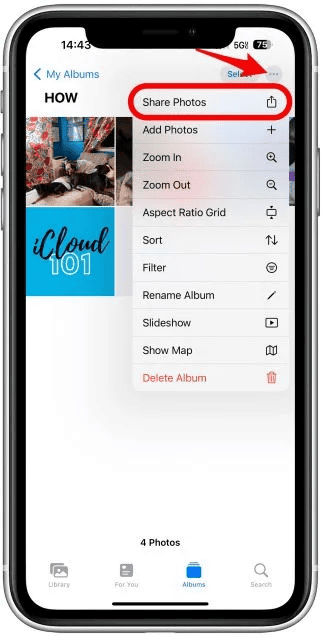 7. Để chia sẻ album của bạn với người khác, hãy mở một album, chạm vào menu Khác và chọn Chia sẻ ảnh.