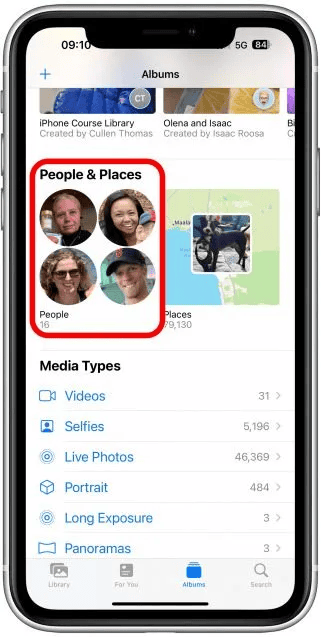 1. Mở ứng dụng Ảnh, chạm vào tab Album và cuộn xuống Người & Đại điểm, nhấn vào Mọi người.