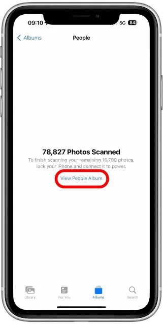 2. Nếu bạn chưa thực hiện việc này trước đây hoặc mới chuyển ảnh iCloud của mình sang iPhone mới, bạn có thể thấy thông báo này. Bạn có thể loại bỏ nó bằng cách chạm vào View People Album, nhưng hãy nhớ rằng nó sẽ chính xác hơn nếu bạn hoàn thành quá trình quét theo hướng dẫn.