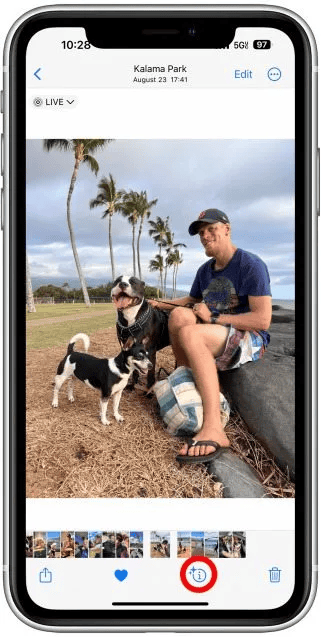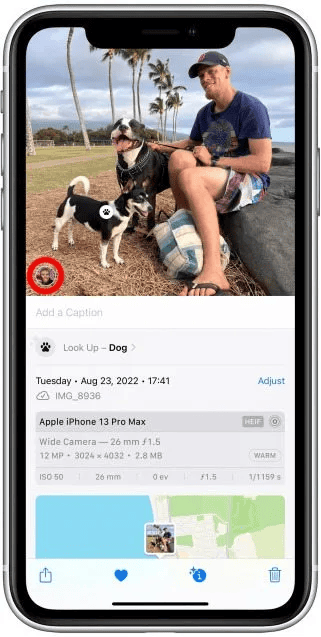 10. Ở góc dưới cùng bên trái của hình ảnh, bạn sẽ thấy người được gắn thẻ. Có thể có một dấu chấm hỏi nếu iPhone của bạn không chắc chắn về nhận dạng. Nhấn vào nó.