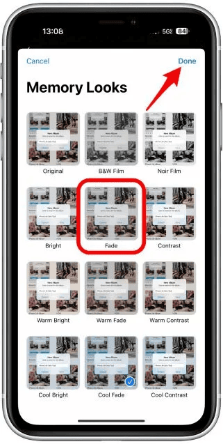 7. Nhấn vào biểu tượng Kiểu để thay đổi giao diện của tất cả ảnh trong Memories.