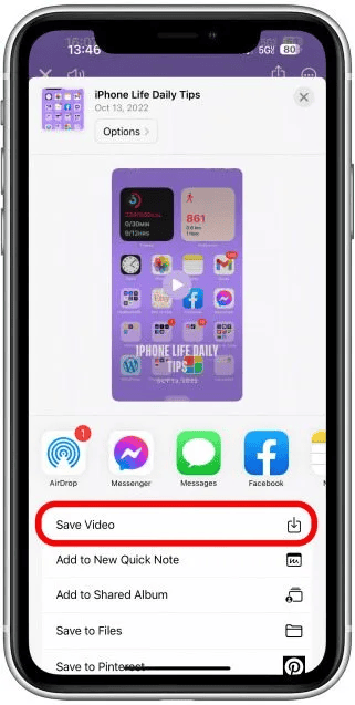 10. Tại đây, bạn có thể chọn Lưu video để lưu video đó vào ứng dụng ảnh của mình hoặc chia sẻ video đó qua AirDrop, Tin nhắn hoặc một trong các tùy chọn khác trong trang Chia sẻ của bạn bằng cách nhấn vào biểu tượng thích hợp.
