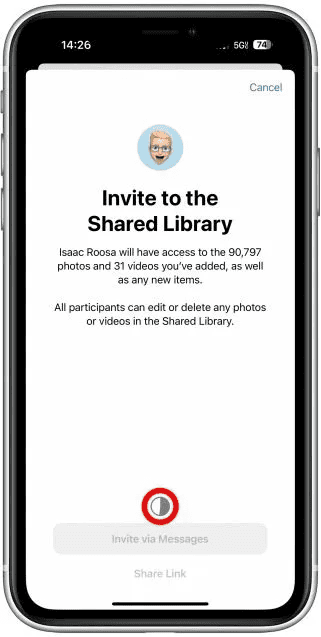 6. Sau khi lời mời của bạn được chấp nhận, bạn sẽ có thể xem trực tiếp Thư viện ảnh được chia sẻ trong ứng dụng Ảnh của mình. Nếu bạn nhấn vào biểu tượng Thêm, bạn sẽ có thể quyết định xem bạn chỉ muốn xem Thư viện cá nhân của mình, chỉ Thư viện được chia sẻ hay cả hai thư viện.