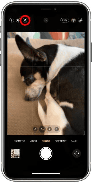 7. Khi mở ứng dụng Máy ảnh, bạn sẽ thấy một biểu tượng mới ở biểu tượng trên cùng bên trái. Nếu biểu tượng Thư viện ảnh được chia sẻ có một đường thẳng chạy qua, ảnh hoặc video bạn sắp chụp sẽ không được chia sẻ trừ khi bạn quyết định chia sẻ chúng sau và thực hiện quy trình chia sẻ thủ công.