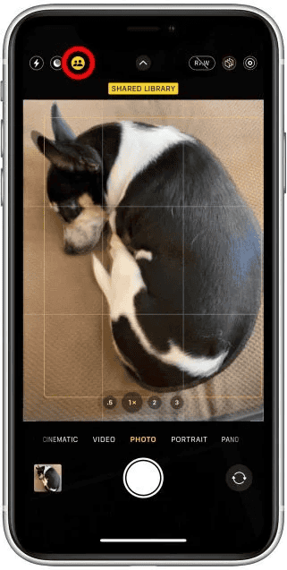8. Nếu biểu tượng Thư viện ảnh được chia sẻ trong ứng dụng Máy ảnh có màu vàng và không có đường kẻ xuyên qua, mọi ảnh hoặc video bạn chụp sẽ được chia sẻ tự động.