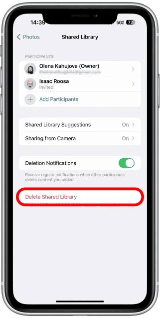 10. Để rời khỏi Thư viện ảnh được chia sẻ, bạn sẽ phải mở Cài đặt và chạm vào ID Apple, sau đó là Ảnh, sau đó là Thư viện ảnh được chia sẻ cho đến khi bạn thấy Rời khỏi Thư viện ảnh được chia sẻ, chạm vào nó rồi xác nhận. Nếu bạn là người tạo, thay vào đó, bạn sẽ thấy Xóa Thư viện được chia sẻ tại đây.