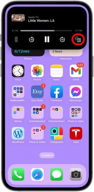 Nếu bạn xem nội dung nào đó trên Apple TV hoặc ứng dụng phát trực tuyến tương thích, bạn cũng sẽ thấy Đang phát trong Dynamic Island của mình. Bạn có thể thấy áp phích phim hoặc biểu tượng có tiêu đề ở một bên và trình hiển thị âm lượng hoặc logo Apple TV có đầu ra âm thanh phù hợp ở bên kia.