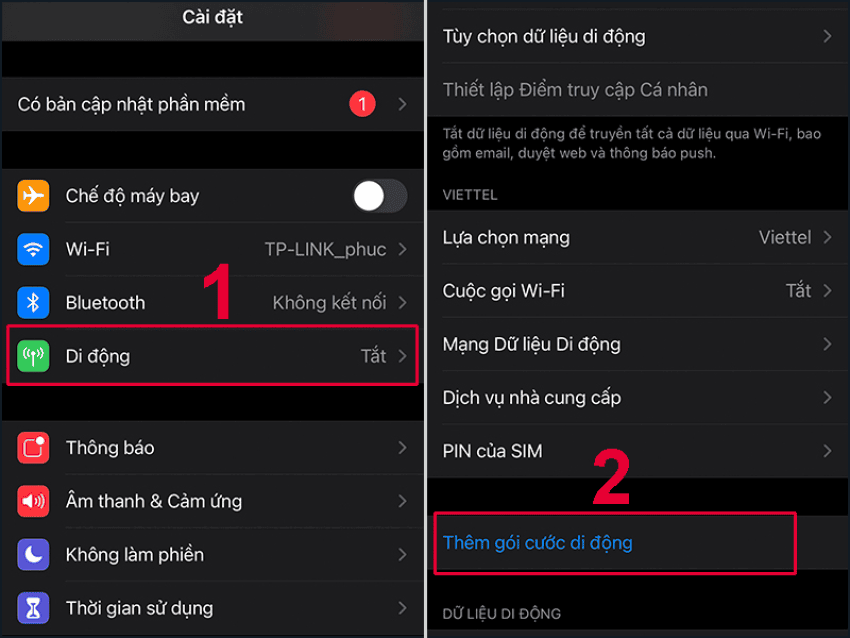 - Bước 2: Chọn mục Di Động (Cellular) và tiếp theo chọn Thêm gói cước (Add Cellular Plan).