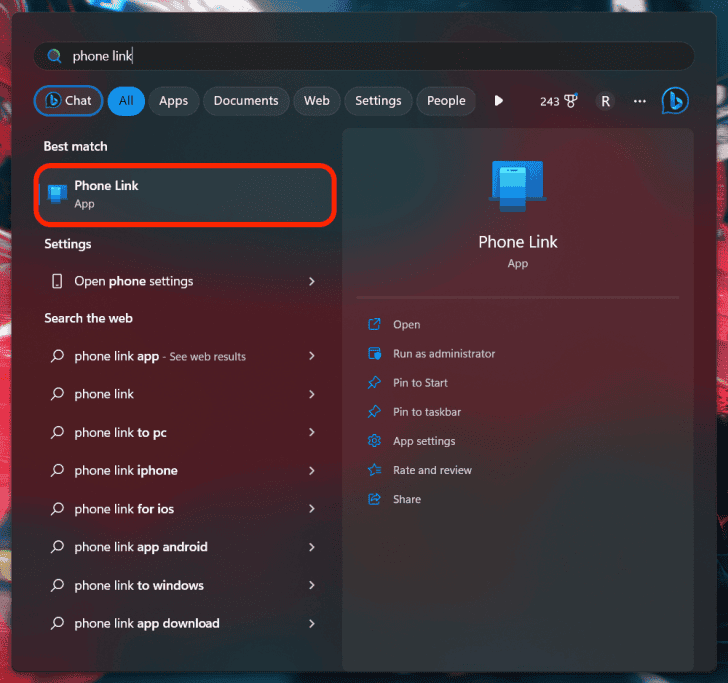 1. Trên PC của bạn, hãy mở ứng dụng Phone Link.
