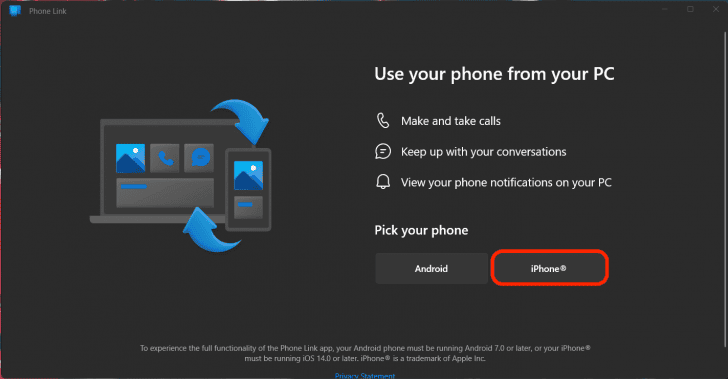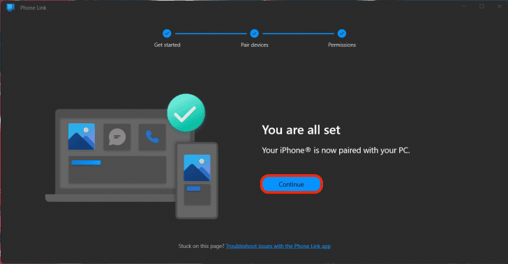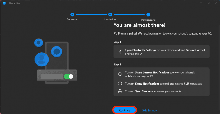 4. Thao tác này sẽ đồng bộ hóa các thông báo và cuộc gọi điện thoại của bạn với ứng dụng Phone Link.