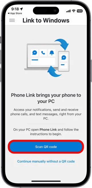 3. Ứng dụng Phone Link sẽ hiển thị mã QR.