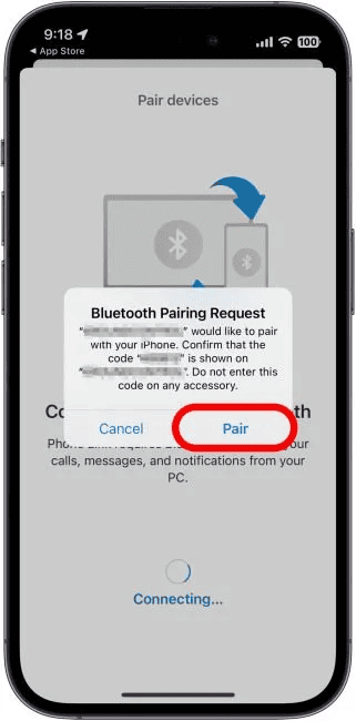 8. Xác minh rằng mã trên iPhone của bạn giống với mã được hiển thị trên PC của bạn và nhấn Ghép nối.