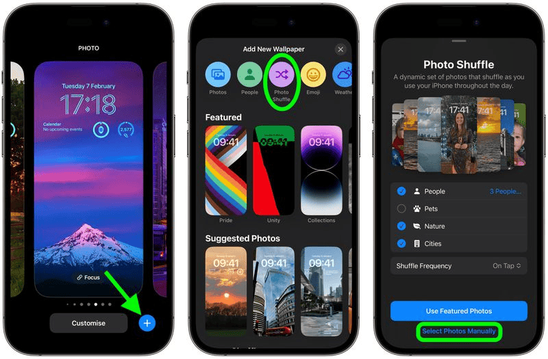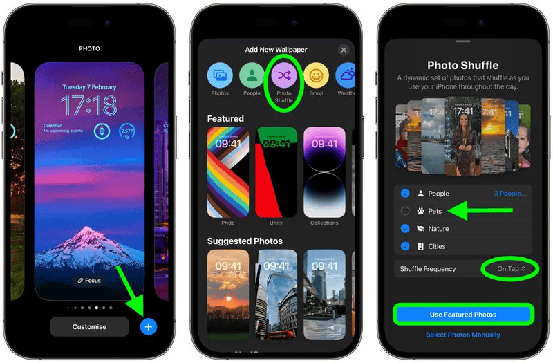 Với các bước thực hiện bên dưới chỉ cho bạn cách thiết lập Xáo trộn ảnh nền màn hình khóa dựa trên các danh mục đã chọn trước. Các bước còn lại sẽ giải thích cách chọn ảnh bạn muốn đưa vào theo cách thủ công. Tiếp tục đọc để tìm hiểu làm thế nào nó được thực hiện nhé.