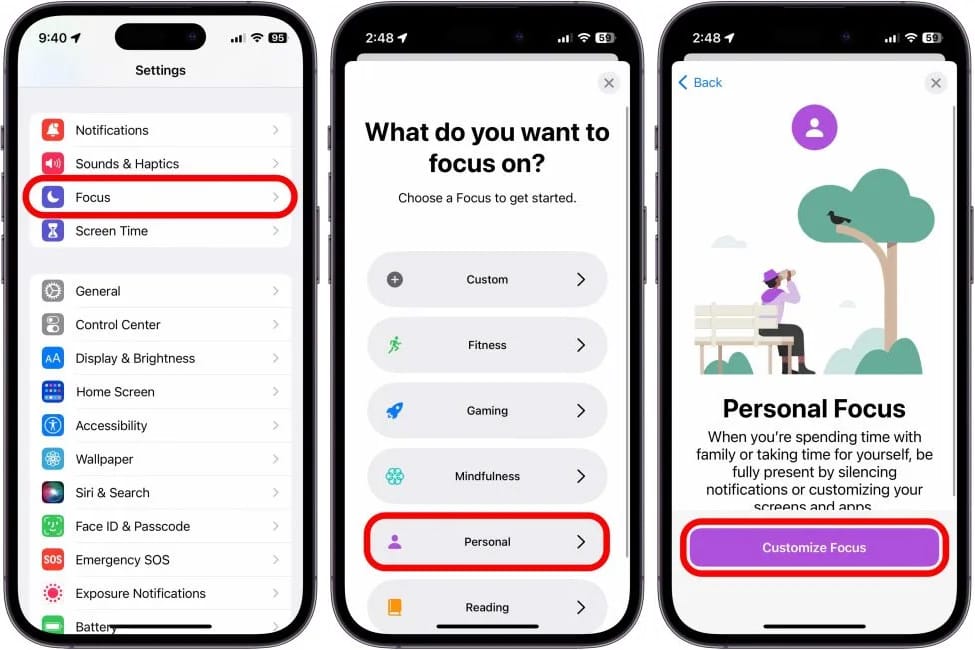 Để thay đổi hình nền trên iPhone theo thời gian trong ngày, bạn có thể sử dụng kết hợp các chế độ Tập trung có sẵn và chế độ Tập trung tùy chỉnh của riêng bạn.